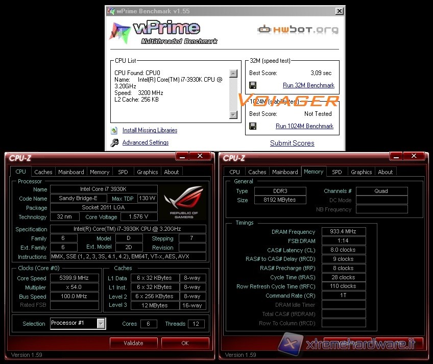 Raggiungere la stabilità a 4800 MHz utilizzando un sistema di raffreddamento a liquido è stata un'opreazione molto semplice. Questa CPU con step C2 ha dimostrato un'ottima propensione all'overclock con tensioni operative decisamente più contenute rispetto alla precedente 3960X. Non potevamo a questo punto esimerci dal testare il Core i7 3930K sotto freddo intenso. Avvalendoci di un Cascade (a doppio stadio) realizzato dalla ditta Dimastech che ci ha permesso di portare il processore fino a -85°, siamo riusciti a raggiungere la frequenza di 5400 MHz sulla quale abbiamo svolto i seguenti test.